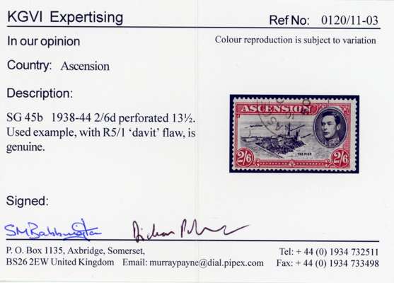 Ascension SG 45b 1938 2s6d with davit flaw used