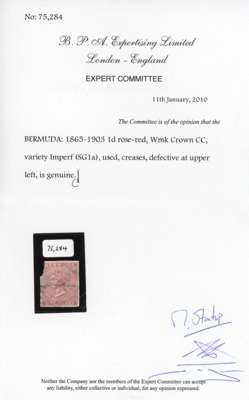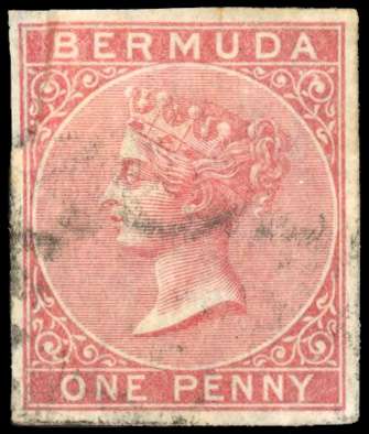 Bermuda SG 1a 1865 1d rose-red imperforate used