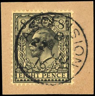 GB used in. 1913 8d black on yellow paper, used on piece with 22 JU 16 CDS, fine and scarce. SG Z47b, £800