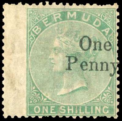 Bermuda SG 17 1875 1d on 1s with fortuitous missing stop unused
