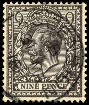 GB used in. 1913 9d agate, fine used with 31 MR 18 CDS. Scarce. SG Z48, £700