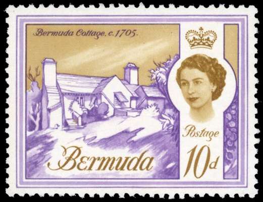 Bermuda SG 197w 1966 10d Cottage with watermark Crown to right of CA mint