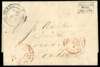 1872 cover to London with a good to fine strike of the black Frank at upper right. Falkland Islands CDS Type F.1 at upper left for JA 1 1872, and two red London PAID arrival CDSs of 17 FEB. Faint manuscript “paid 1/-” also on front. Light filing folds but a neat cover. SG FR1, £15000