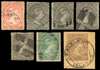 1878-9 1d with CDS; three watermarked 4ds, two with light F1 cancels and one with ‘early 4x2’ cork; watermarked 4d with ‘early 4x2’; 6d imperf at left and base, and 1s on piece imperf at base with CDS. Some small faults, including the watermarked 4d with short perfs at top, and the 6d with a minor thin spot. SG 1-4, £1690