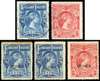 1898 2s6d and 5s pair used, 5s centred left; and overprinted SPECIMEN Type B2 o.g., the 2s6d with a little adhesion on reverse at top. Also a further 2s6d Specimen o.g., but foxed. SG 41-42s