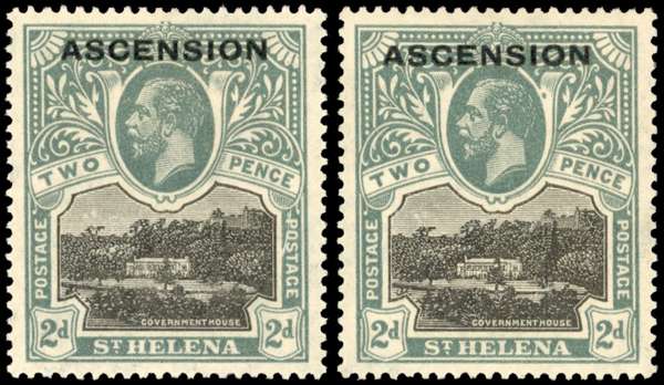 Ascension SG 4a, b 1922 2d line through 'P' and blot on scroll mint