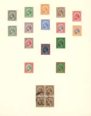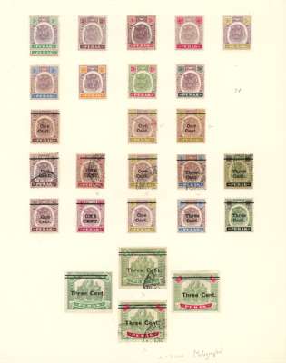 1880-1970 mint and used collection (304) on leaves. Much of the condition is mixed, but there is good material throughout. Includes a quantity of earlies (some light duplication) with SG 9 unused, 16 unused (defective at top), 28 used (some clipped perfs), 43 mint (foxed) and two used, 44 two mint, 45 mint and used, 49 mint, 50 mint and used, 51 two mint etc. Later with 1895 values to 50c mint, some telegraphic or fiscal cancels; 1925 set mint and used; 1950 set less 30c mint and used, and a group of Service overprints including SG O1-5 mint, O1c mint, O3a mint (toned) and O4a unused. The condition issues make viewing highly desirable