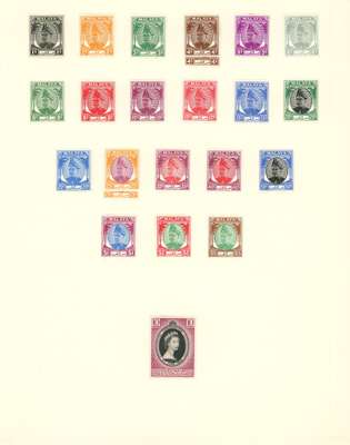 1881-1970 mint and used collection (200) on leaves. Includes SG 2 mint, 3 mint (foxed), a good range of the 1885 2c overprints both mint and used, 46-8 mint (brown gum), 1895 set to $5 less 1898 50c mint but some gum loss and foxing (the $2 quite respectable) and used. the $1 a little washed, the $2 - $5 with fiscal cancels; 1900 surcharge trio mint, 1c and 3c on 50c used; 1935 to $2 mint and set used1941 $1, $2 and unissued $5 mint; 1948 Wedding and 1950 set less 30c both mint and used. Mixed condition, especially with the earlier material, but a good collection and well worth viewing