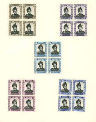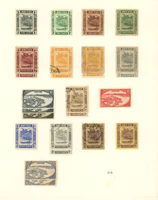 1907-52 collection (184) on leaves, mostly mint. Includes 1907 set, 1908 set to $5, 1916 colour change pair, 1922 Malaya-Borneo (4c, 5c, $1 short 'I'), 1924-37 set, 1947 set and 1952 set in blocks of four with the lower pairs unmounted. Some slight duplication; also some mixed condition, but mostly good with fresh colours
