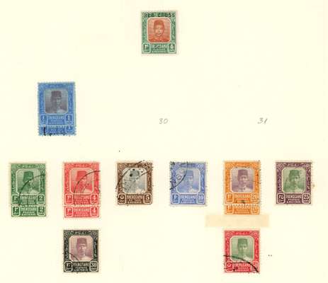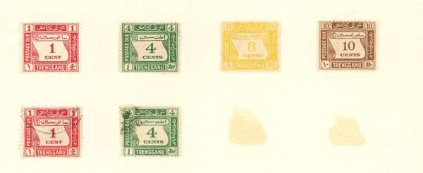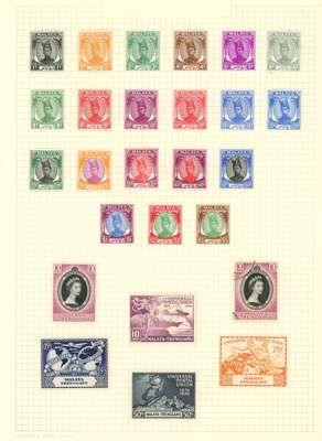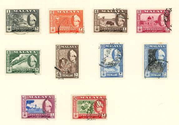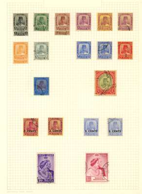 1910-63 collection (162) mint and used on leaves. Includes 1910 set to $1 o.g. and $5 Specimen, 1921-41 various with $5 MCA fiscally used, Malaya-Borneo set o.g. (some pink adhesions from backing paper, still fine), Wedding o.g. and used (2, one on piece with Kuala Trengganu CDS), 1949 set less 30ct o.g. and used (mixed postmarks), Postage Dues mint and 1c and 4c used