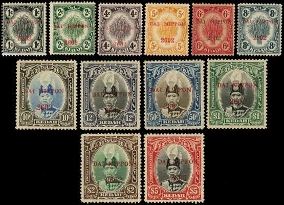 1942 Kedah with DAI NIPPON 2602, large part o.g. The set less the 25c, 30c and 40c, large part o.g., the 6c toned...