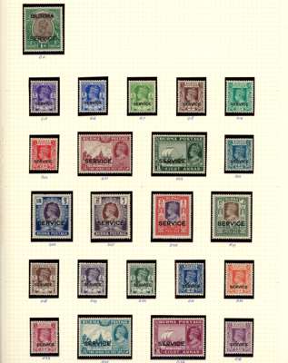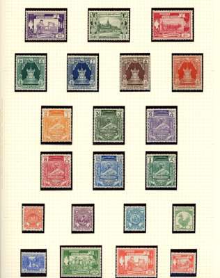 1937-47 mint collection (73) on leaves. Includes 1937 set to 1r unmounted, 1938 set (minor bends) unmounted, 1947 set; Officials 1937 to 1r unmounted, 1938 unmounted (1r perf fault), 1946 and 1947 sets unmounted; also some later issues