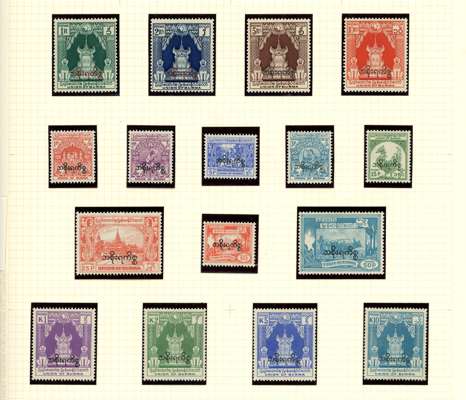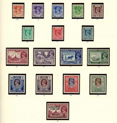 Burma 1937-47 mint collection on leaves