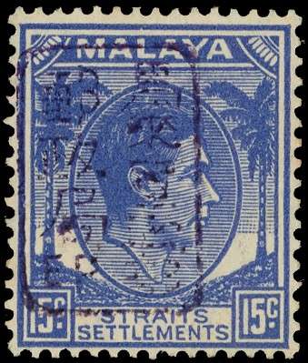 1942 Straits 15c blue with Chop H in violet, large part o.g., fine. BPA Certificate (2023). SG...
