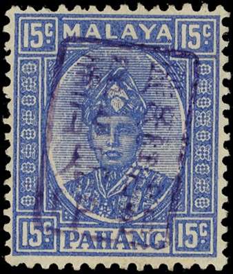 1942 Pahang 15c blue with Chop A in violet, part o.g. with minor hinge remainder, still fine. BPA Certificate (2023)....