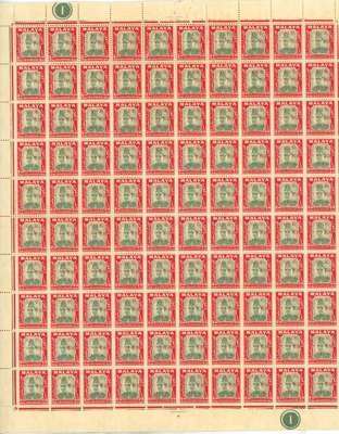 1944 Red Cross sucharges. The Selangor pair, $1 on $1 and $1.50 on $2 complete unmounted o.g. sheets of 100, usual streaky gum, some splitting (fairly minor). Unusual. SG J316-7, £1950