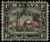 Trengganu. 1944 TRENGGANU on Selangor 1c black on thin striated paper with red Kanji overprint, used with part Dungun cancel, rounded top right corner perf. BPA Certificate (2023), very rare. SG TT16b, £4250