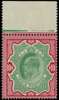 1909 10r green and carmine, top marginal, lightly hinged on the selvedge, the stamp unmounted o.g. SG...