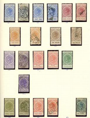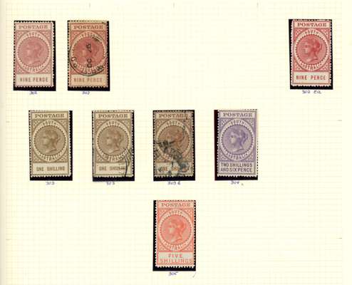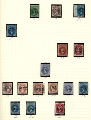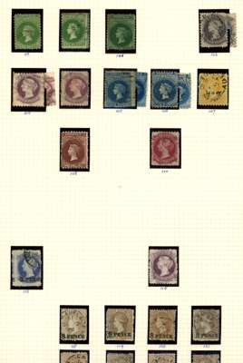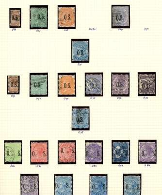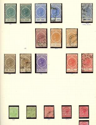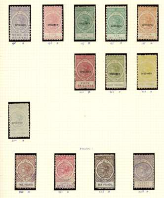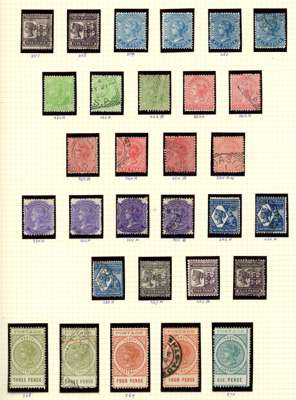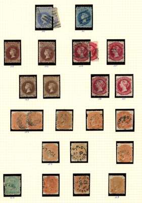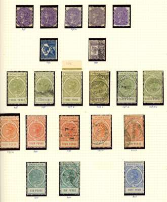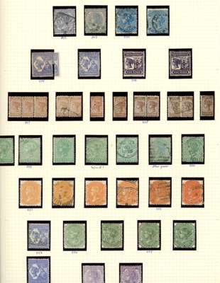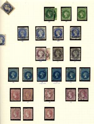 1855-1913 mint and used collection (hundreds) on Philatelic leaves. An extensive range of used, the condition being mixed with some fine, the later with some o.g. examples. Imperf and rouletted group quite extensive, with a solid used representation. The DLR high values have SG 197 used, 197a o.g., 199a used, 277 o.g. (2), 278 o.g. 287-290 o.g., 304a and 305 o.g.,; 1886 Specimens nine values to £5 (six perf 10, the others from presentation sets). Also O.S. overprints and a few Departmentals