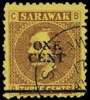 1892 1c on 3c brown on yellow paper, surcharge double, neatly used. Perfs a little uneven, still fine. SG...