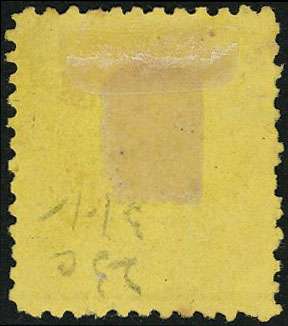 1892 1c on 3c brown on yellow paper, surcharge double, neatly used. Perfs a little uneven, still fine. SG 27e, £500