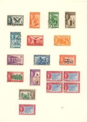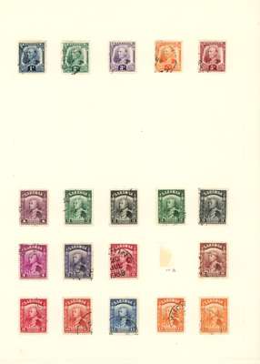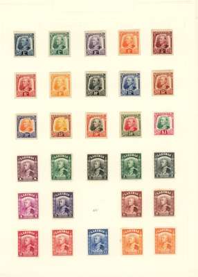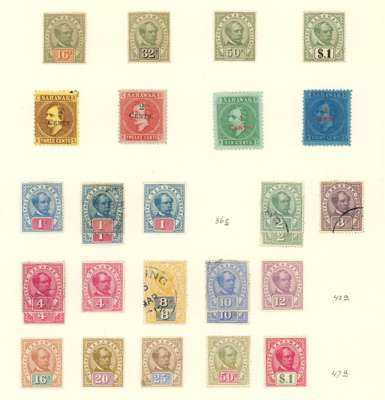 1869-1952 collection (270) on leaves, mixed mint and used. Some reasonable earlies, 1888 set less 3c mint, some toning and fading but still a fair set; 1889 2c on 8c double surcharge, dried o.g., slight foxing; 1899 less 3c o.g.; 1928 set unmounted o.g.; 1932 set o.g.; 1948 Centenary set on cover, and the 8c, 50c and $1 in unmounted o.g. proof blocks of four, Wedding unmounted and 1950 set large part o.g.