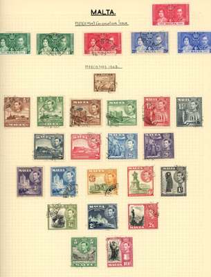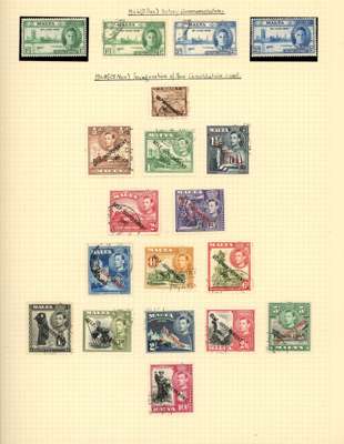 British Europe KG VI collection (170), mint and used on Philatelic leaves. Includes Cyprus Wedding unmounted, the 1½p with extra decoration; Gibraltar 1938 all perfs and shades used (5/- perf 14 parcel cancel), Wedding unmounted o.g. and used; Malta 1938-43 used, and 1948 original set of 15, Wedding unmounted and used. Some foxing in places, not affecting the listed items in any meaningful way