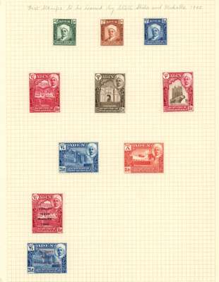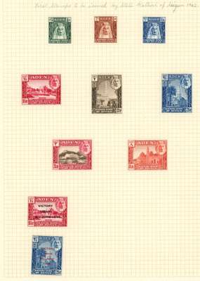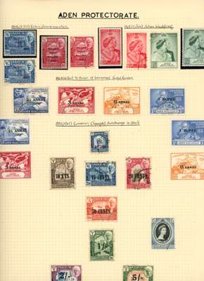 Collection (hundreds) mainly KG VI on Philatelic leaves including Aden Dhow set o.g. (5r aniline), some foxing,...