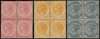 1882 4c rose, 8c orange and 10c slate watermark Crown CA blocks of four o.g., upper pair in each with several...