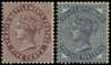 1882 5d purple-brown and 10c slate watermark Crown CC, o.g. but each rather extensively hinged leaving disturbed gum at top. SG 48-9, £680