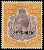 1912 $500 purple and orange watermark MCA, overprinted SPECIMEN Type D12, large part o.g. Fresh. SG 215s, £5500