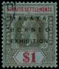 1922 Malaya-Borneo $1 watermark Script, no stop, corner Singapore CDS. SG...