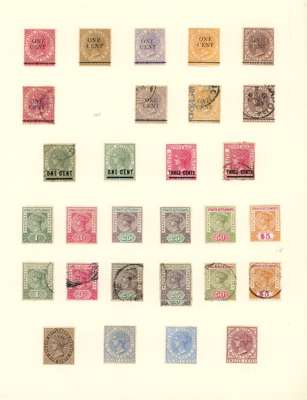 1867-1941 mint and used collection (hundreds) on leaves, commencing with a range of the 1867 issue used and unused; the set used (some defects), and 1½c - 4c, 24c and 32c unused, mostly no gum. The Victoria era has a good number of better surcharges, the condition being mixed, some unused without gum and occasional stamps being regummed. We note SG 18 unused with gum (slight stain at top), 20-1 unused (2, one of each regummed), 22-3 used, 28 used (perfinned B.M. & Co), 41-2 o.g., 47 used (CDS and chop), 54 mint and used, 61 x 2 o.g., 61-2 used, 63-71 mint and used, 73 mint and used, 74 used, 80 unused (toned), 80 used (CDS and chop), 84 unused, some useful multiples, 105 fresh o.g. and fine used, 110-121 o.g., 141-151 less 146 o.g., 193-212 o.g. shades including 3 extra $2, Malaya-Borneo mint (no MCA $1) and used values to $2, 1936 and 1937 sets o.g. A very nice collection, well worth spending some time viewing