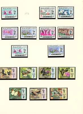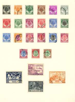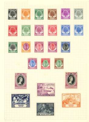 1912-70 (180) collection on leaves. Includes 1912 set mint. 1919 50c on $2 mint, 1912 values to $3 mint and set to 50c used, Malaya-Borneo set mint, 1926 values to 35c used, 1937 set mint, Wedding mint and used, 1950 set less 30c mint and used (used $2 soiled), 1957 to $2 used and $5 mint pair (lower stamp unmounted). Mostly good