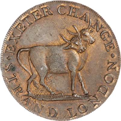 London - Strand, Gilbert Pidcock Halfpenny (1801), Two-headed cow standing right, rev. Kangaroo standing left with baby in pouch (born 1800), edge, plain, 30mm/11.18gm. (DH 452). Good Extremely Fine with almost full original mint lustre, rare.