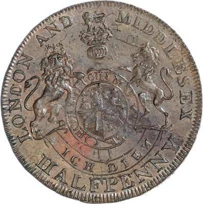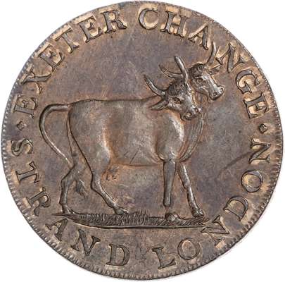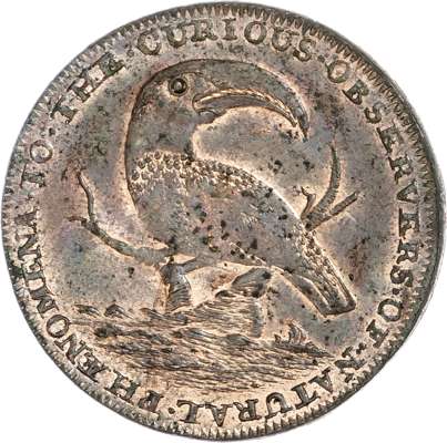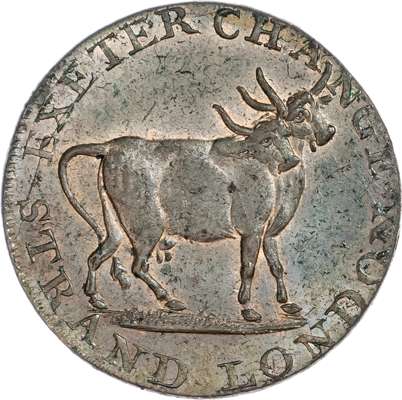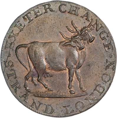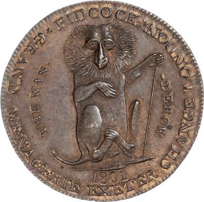 London - Strand, Gilbert Pidcock Halfpenny 1801, Two-headed cow standing right, rev. Wanderow (Lion-tailed macaque) sitting up, edge plain, 30mm/9.38gm. (DH 453). Another but rev. a toucan sitting on a tree, edge plain, 29mm/7.43gm. (DH 454). Another but rev. the Royal arms, 29mm/6.91gm. (DH 455). All good Extremely Fine and each with a fair amount of original colour, all scarce.
