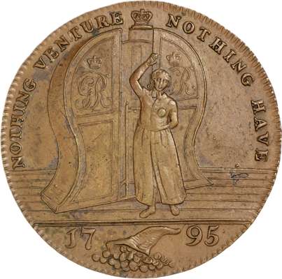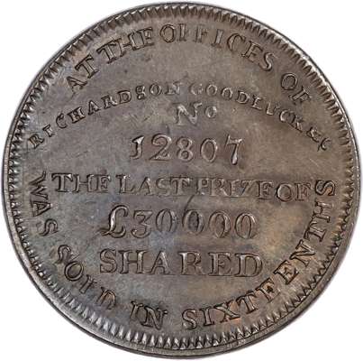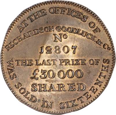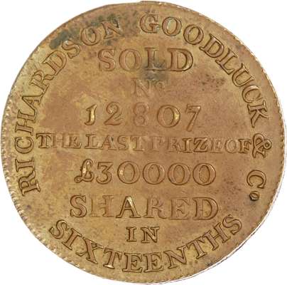 London - Cornhill, Richardson Goodluck & Co. (stockbrokers and lottery organisers) advertising Halfpenny 1795