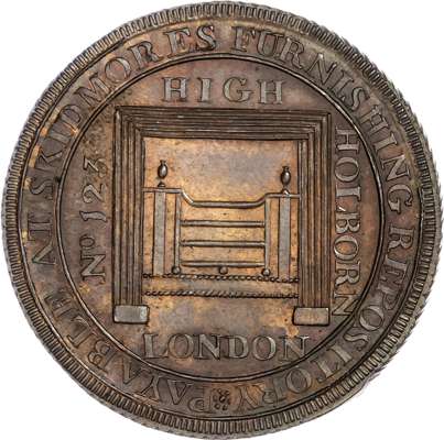 Second ex J. Spingarn Col. December 1997; Ex. The late Robinson S. Brown Jr Collection of 18th Century Tokens (Part II: Middlesex), via DNW 6 Oct 2010, lot 286.