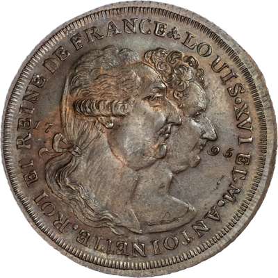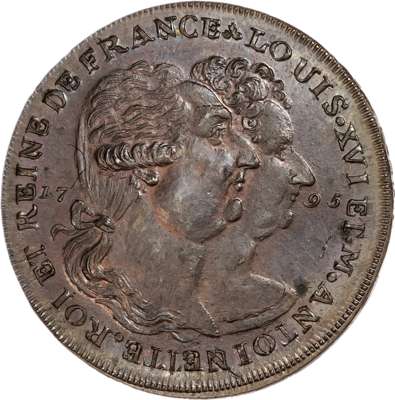 London - Holborn, Paul Skidmore mule (King & Queen of France, Nat. Ser.) Halfpenny 1795, Busts right of louis XVI and Marie Antoinette, rev. fire-grate, edge SKIDMORE HOLBORN LONDON, 28.5mm/12.66gm. (DH 492) Another the same but edge diagonally milled, 30mm/9.99gm. (DH 492b). Both good Extremely Fine, toned with more than a trace of original lustre, first very rare ‘RR’ and second extremely rare ‘RRR’. [2]