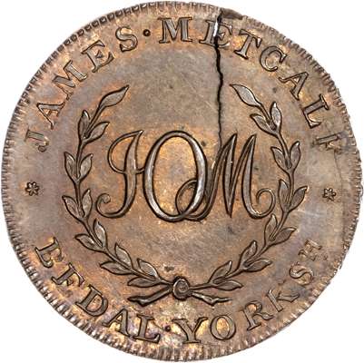 London - Covent Garden, Paul Skidmore Social Series mule Halfpenny (1795), View of St. Paul’s church, rev. Bust right of George III, edge plain. 31mm/9.73gm. (DH 523b). Another mule but rev. IOM cypher (Bedale Yorks), edge SKIDMORE HOLBORN LONDON, 30mm/12.29gm. (DH 526), Both with striking cracks otherwise both good Extremely Fine, nicely toned with remnants of original mint lustre, second rare. [2]