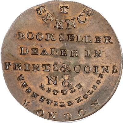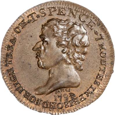 London - Holborn, Thomas Spence Halfpenny 1794, His bare bust left, rev. 9-line advertisement, edge plain, 29.5mm/10.22gm. (DH 694). Well struck, good Extremely Fine with a fair amount of amount of original lustre, scarce.