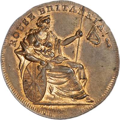 London - Holborn, Thomas Spence Halfpenny 1796, A landsman being pressganged into the Navy, rev. Britannia seated right dropping the Cap of Liberty, edge PAYABLE IN LONDON rest engrailed, 30mm/10.36gm. (DH 727). Well struck, good Extremely Fine with almost full original mint lustre - superb and scarce.