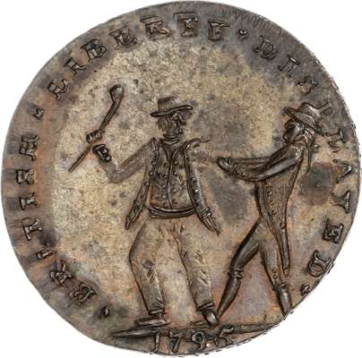 London - Holborn, Thomas Spence Halfpenny 1796, As above but rev. mis-struck, edge SPENCE X DEALER X IN X COINS X LONDON. 30mm/10.77gm. (DH 729). Good Extremely Fine with some lustre, rev. double struck, flat in parts, scarce, unique.