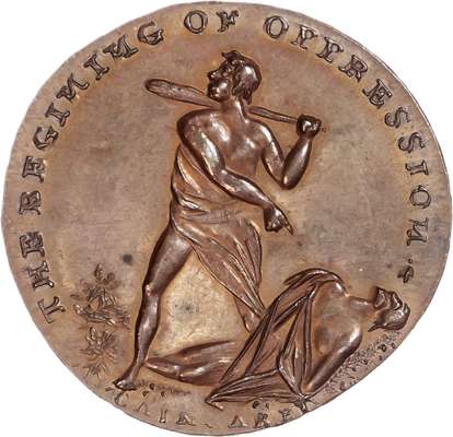 London - Holborn, Thomas Spence Halfpenny 1796, A landsman being press-ganged into the Navy, rev. Cain slaying Abel, edge SPENCE DEALER x IN x COINS x LONDON x, 30mm/12.63gm. (DH 735). Well struck, good Extremely Fine, toned - chestnut and iridescent, scarce.