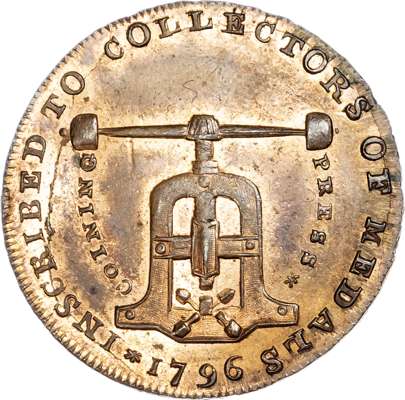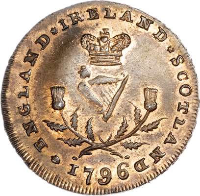 London - Holborn, Thomas Spence bronzed Halfpenny 1796, A Screw Press, rev. Two boxers facing each other, edge SPENCE DEALER x IN x COINS x LONDON x, 28.5mm/10.21gm. (DH 740). Well struck, hairline flan crack visible on obv., otherwise good Extremely Fine, bronzed and reflective, scarce.