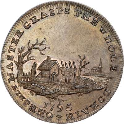 London - Holborn, Thomas Spence Halfpenny 1795, Deserted village with derelict houses, rev. Cock crowing over skulking lion, 29mm/10.92gm. (DH 747a). Very well struck - an early strike as obv. die not yet broken, good Extremely Fine, evenly and prettily toned with trace of original lustre, scarce.