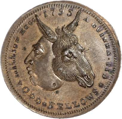 London - Holborn, Thomas Spence Halfpenny 1795, Draped bust right of the radical and pro-republican MP Charles Fox, rev. Head of Geo. III conjoined with that of an ass, edge SPENCE X DEALER X IN X COINS X LONDON. 29.5mm/12,41gm. (DH 767). Well struck, good Extremely Fine and evenly toned with reflection, scarce.