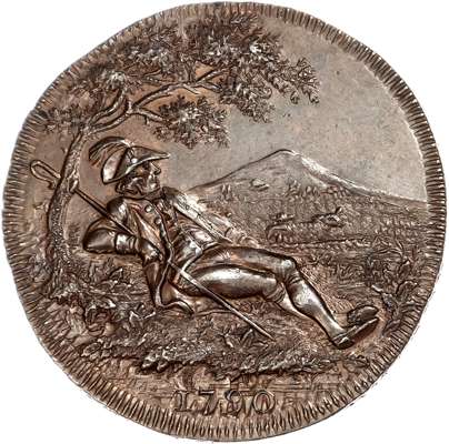 London - Holborn, Thomas Spence bronzed Halfpenny 1790, Draped bust right of the radical and pro-republican MP Charles Fox, rev. A shepherd reclining under a tree, edge, SPENCE DEALER x IN x COINS x LONDON x 29.5mm/11.94gm. (DH 769). Well struck, good Extremely Fine and with good reflective bronze toning, rare as such.