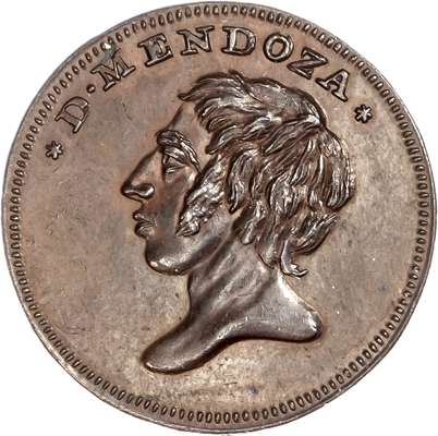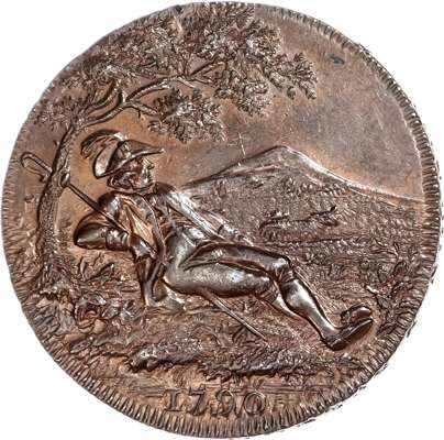 London - Holborn, Thomas Spence bronzed Halfpenny 1790, Bust left of the boxer Daniel Mendoza, rev. A shepherd reclining under a tree, edge SPENCE DEALER x IN x COINS x LONDON x, 28.25mm/10.54gm. (DH 788). Good Extremely Fine with marvellously rich bronze toning, rare.