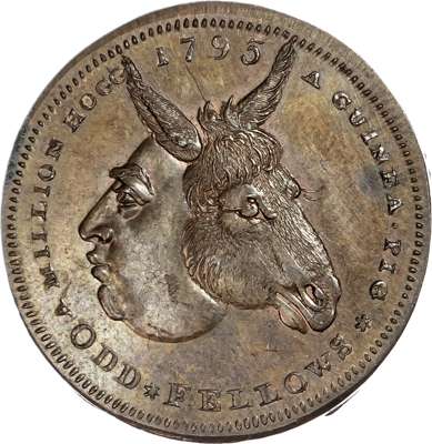 London - Holborn, Thomas Spence Halfpenny 1795, Head of George III conjoined with that of an ass, rev. Heads of Pitt frowning and Fox laughing, conjoined, edge plain, 29.5mm/12.06gm. (DH 795b). Well struck, good Extremely Fine, prettily toned with much reflection and iridescence and a trace of original lustre, scarce.